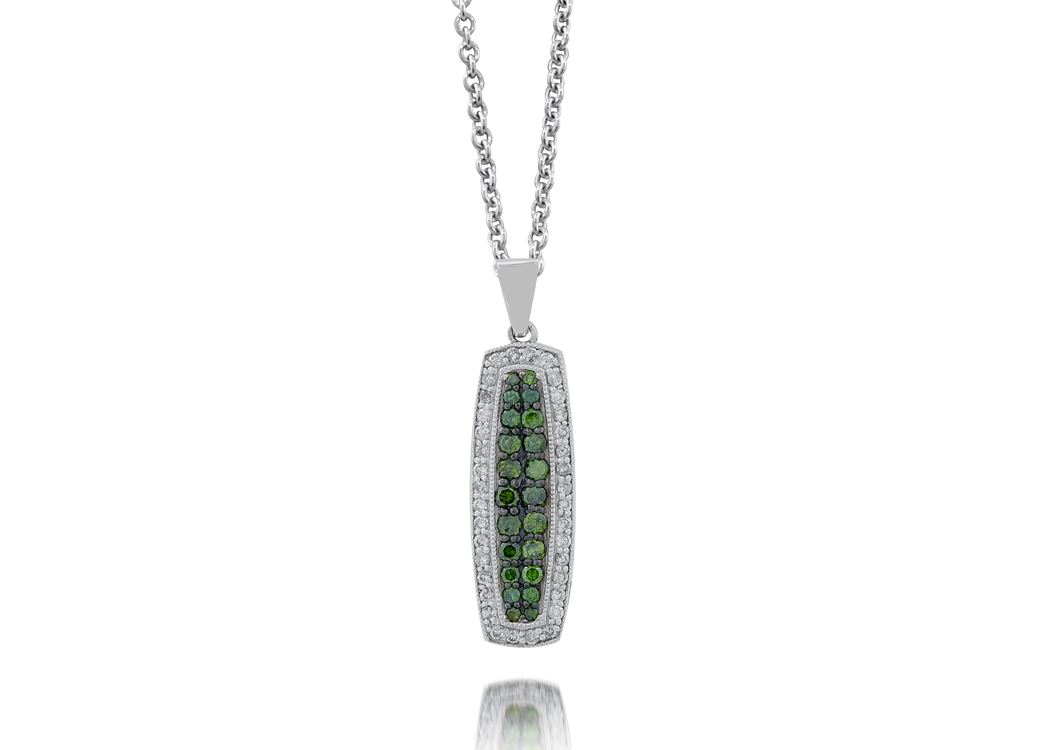 36 rds. 0.30 Ct. with Chain; 22 rds. 0.49 Ct. Green Tre. 3.5% P/S