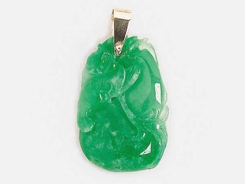 14 K gold, carved jade with suspension ring depicting a tiny monkey, gross weight: 14.5 g.