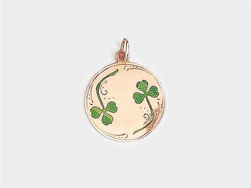 14 K gold, round flan 2 enamelled clover motif decoration, Vienna, circa 1900, marked, weight: 2.1 g.