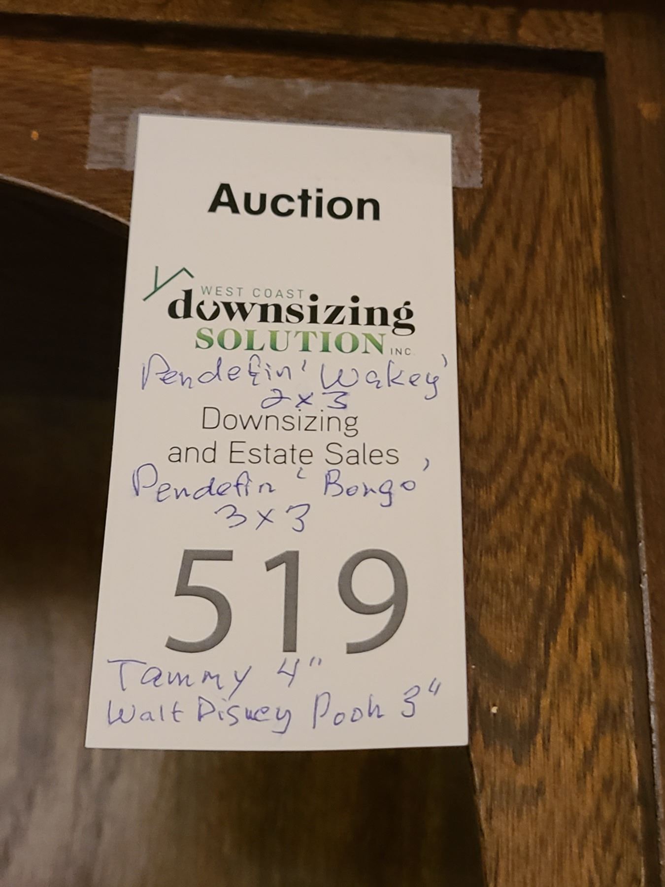 Pendelfin Wakey, 2x3, Bongo 3x3, and Tammy 4 in. Includes Walt Disney Winnie the Pooh 3 in. Pickup in cat. B at 10 am.