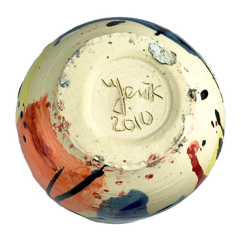 This is hand made ceramic decorative sculpture by Jenik Cook. Hand signed by the artist, it is accompanied by a letter of authenticity. This artwork comes from the artist's personal collection. Measures approximately 8" x 4" x 4".