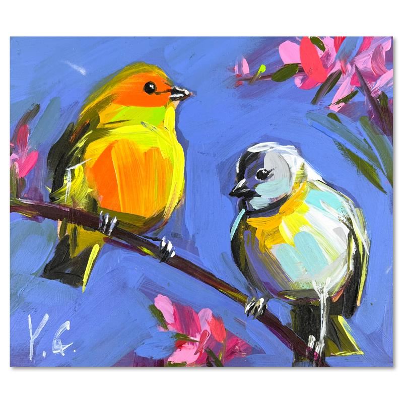 This is an untitled original painting on acrylic on board by Yasna Godovanik. Hand Signed by the artist, the piece comes with a letter of authenticity. Measures approximately 4.5" x 4.5".