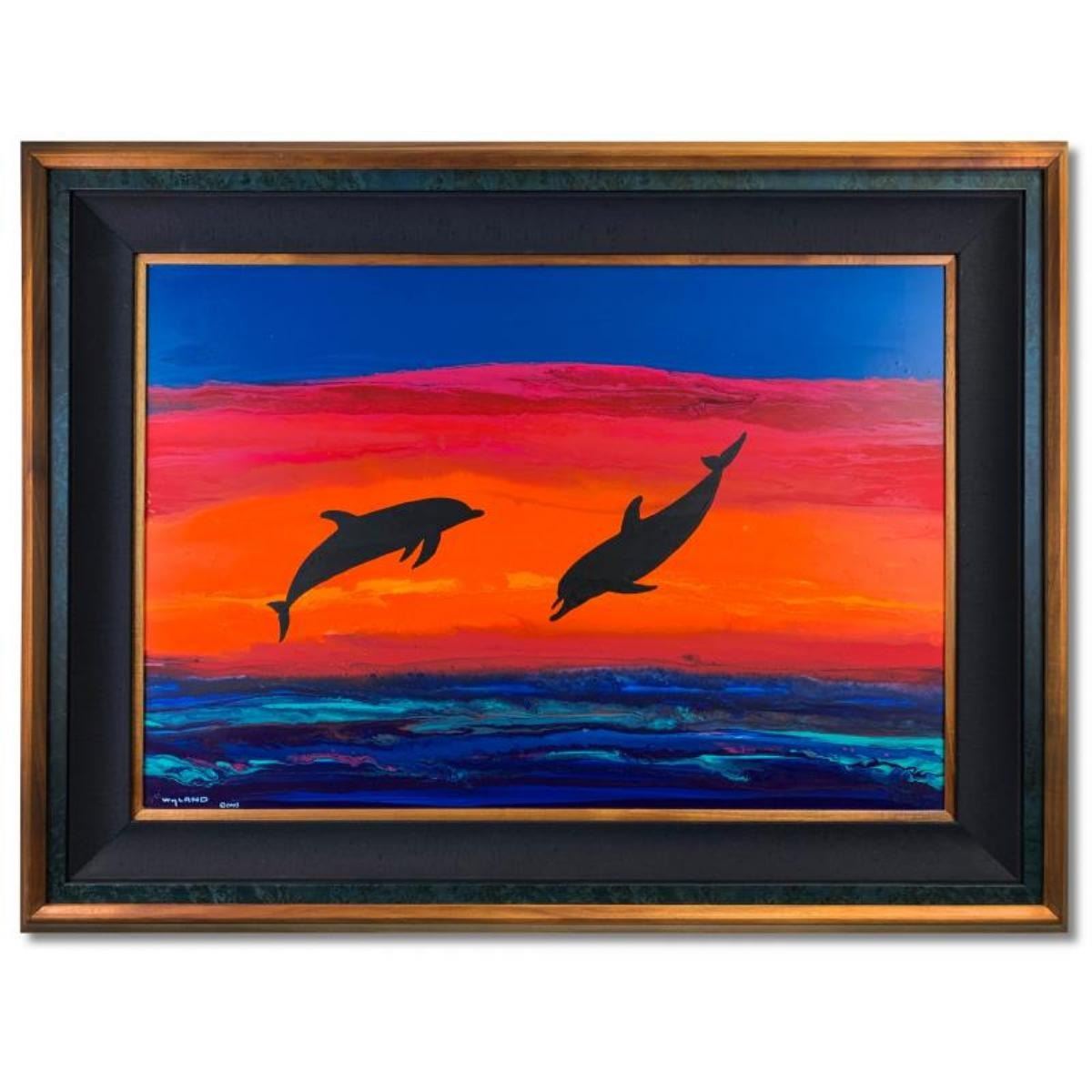 "Island Time" is an original Original Painting painting on Board by Wyland that is hand signed and comes with a certificate of authenticity. The frame is imperfect with moderate wear. Measures approximately 46" x 32" (framed), 36" x 25" (image).