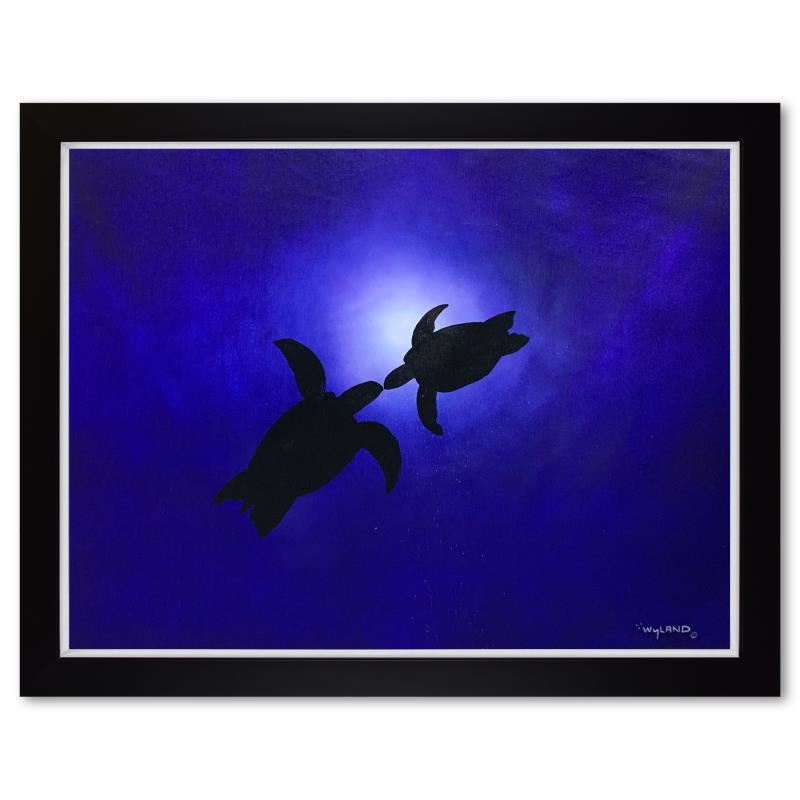 This is an original painting acrylic on canvas by Wyland. Hand signed by the artist, this piece comes framed and with a letter of authenticity. Measures approximately 35" x 45" (framed), 29" x39" (image). This item requires special handling and may have a longer than usual turnaround.