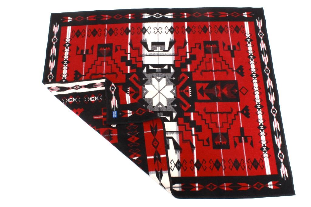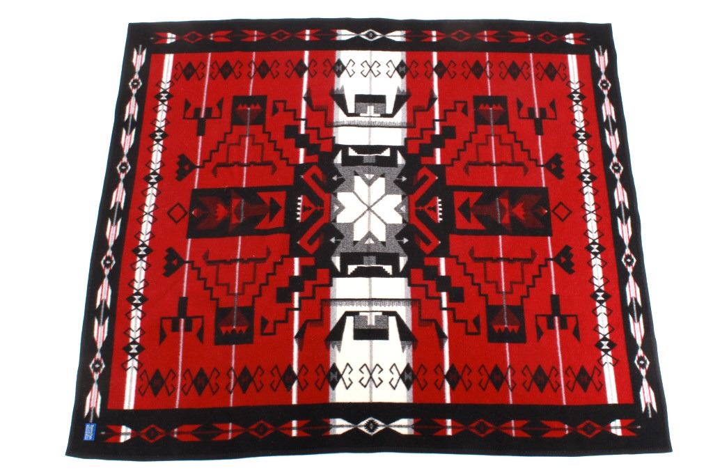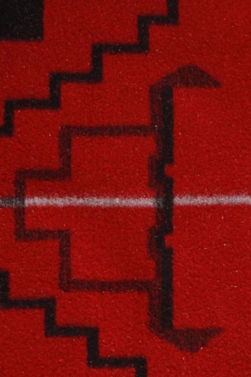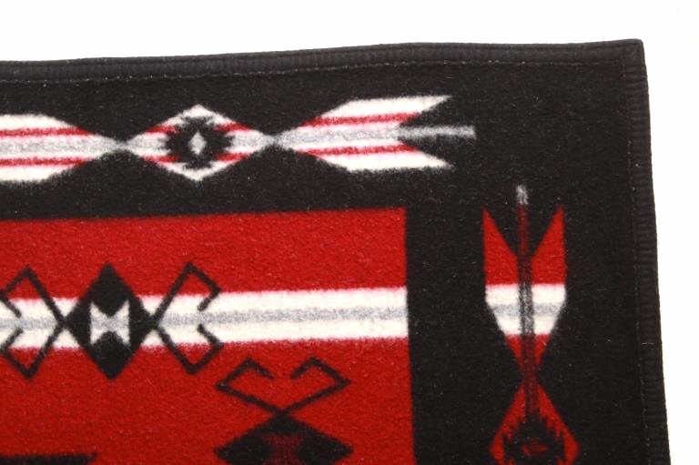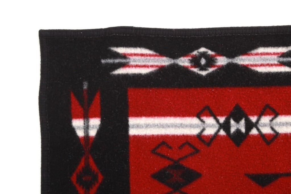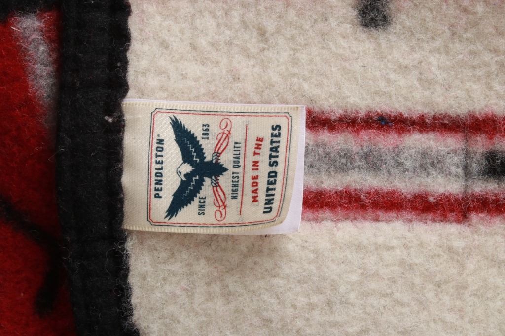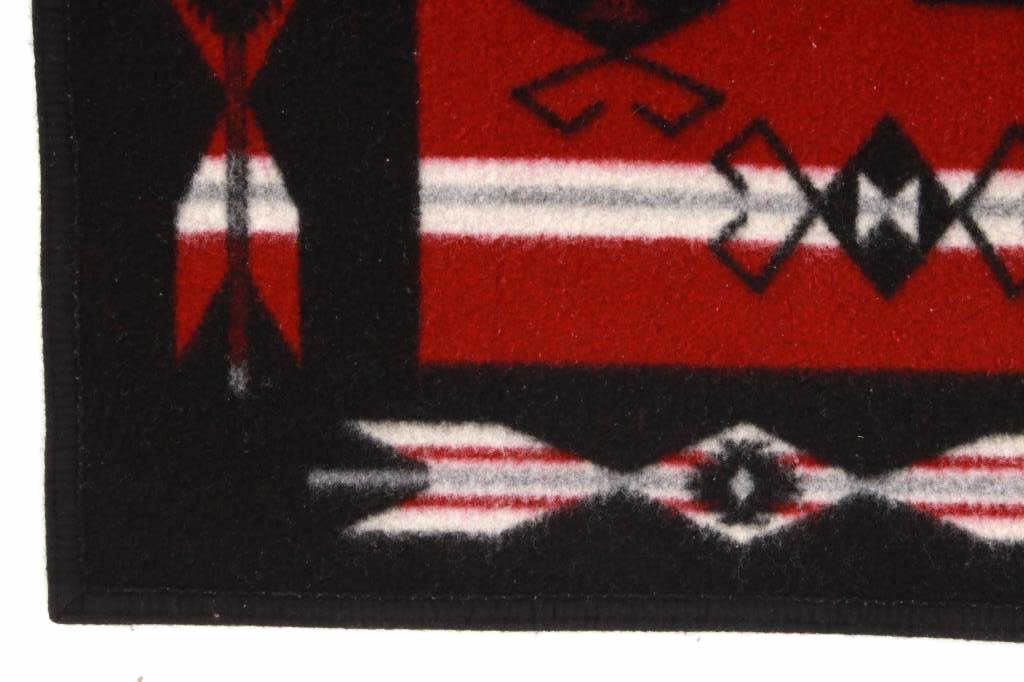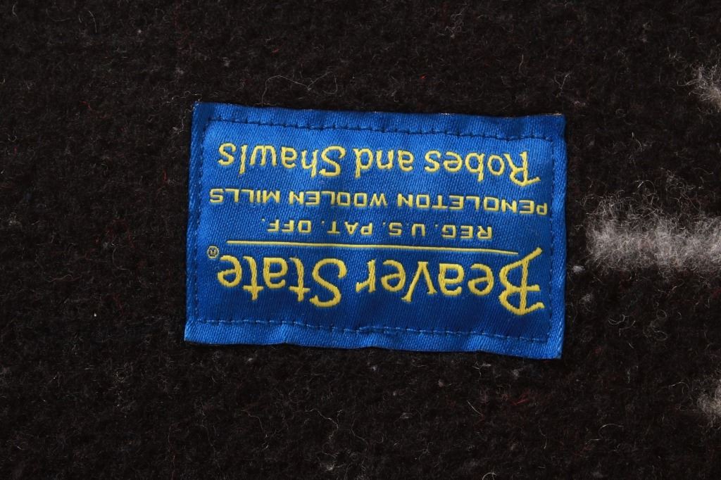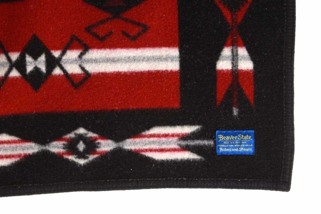 Featured in this lot is this Pendelton Beaver State two sided trade blanket. In 1912 Pendleton began producing wool blankets with authentic, traditional Native American Indian designs for some of the Northwest Tribes under the Beaver State label. Pendleton Blankets and the Beaver State label have since been highly regarded for quality, durability and warmth. The blanket features a lovely decoration with a black field and shows geometric patterns of red, white, and black coloration. The condition of this blanket is good with no obvious signs of damage and in good overall condition. The measurements of this blanket is 64" x 72".