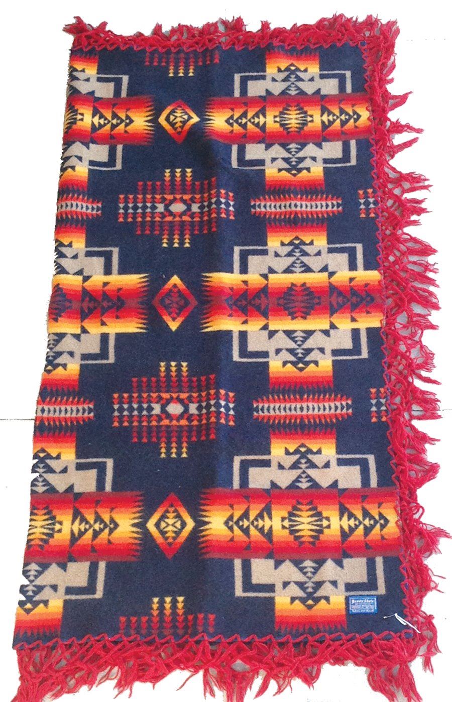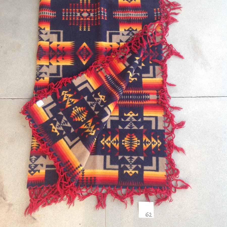 Like new "Chief Joseph Shawl" in reversible color with hand tie fringe edges. Very good condition.,,62" x 60"