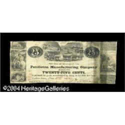 Pendleton Factory, SC- Pendleton Manufacturing Company <B>Pendleton Factory, SC- Pendleton Manufacturing Company</B></I> 25¢ Jan. 6, 1862 Sheheen<BR>A very scarce piece of South Carolina scrip. <B>Fine</B></I> in appearance, but with a major tape repair on the right side. <BR><BR><B>Important notice:</B> Heritage usually auctions material at the rate of 200-250 lots per hour. On some occasions eBay Live bid software or the Internet may not be able to keep up with the pace of the auction. We recommend placing a realistic absentee bid now as insurance to avoid disappointment. Occasionally the auctioneer may eliminate or reject an eBay Live bid, and the auctioneer may also reopen a lot after the close of the eBay live bidding (usually because we missed an audience bid), and may reject your bid even if it shows you as the winning bidder. By bidding via eBay Live, you agree that Heritage may award the lot to another bidder at its sole discretion under the circumstances described above or any other reasonable circumstances. Since eBay bids are not shown to us until we open the lot on the floor, we treat those bids just like floor bids. In most cases the floor responds before the eBay bid is presented to us, due to Internet lag time, so for consistency we have made it a policy that floor bids are always considered first over tie eBay live bids. Also please note that all Heritage lots purchased through eBay Live carry a 20% Buyer's Premium. Please make sure you read the Terms and Conditions before you bid. This lot is being auctioned in conjunction with a live floor auction by Heritage Galleries & Auctioneers. All final auction and invoice information will be supplied by Heritage Galleries & Auctioneers, and all other information should be considered preliminary. Lot:15890