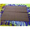 This beautiful purple and tan, wool shawl can be used for many purposes. When completely opened up it measures 64 x 53. It is fringed on all sides. Like new condition.