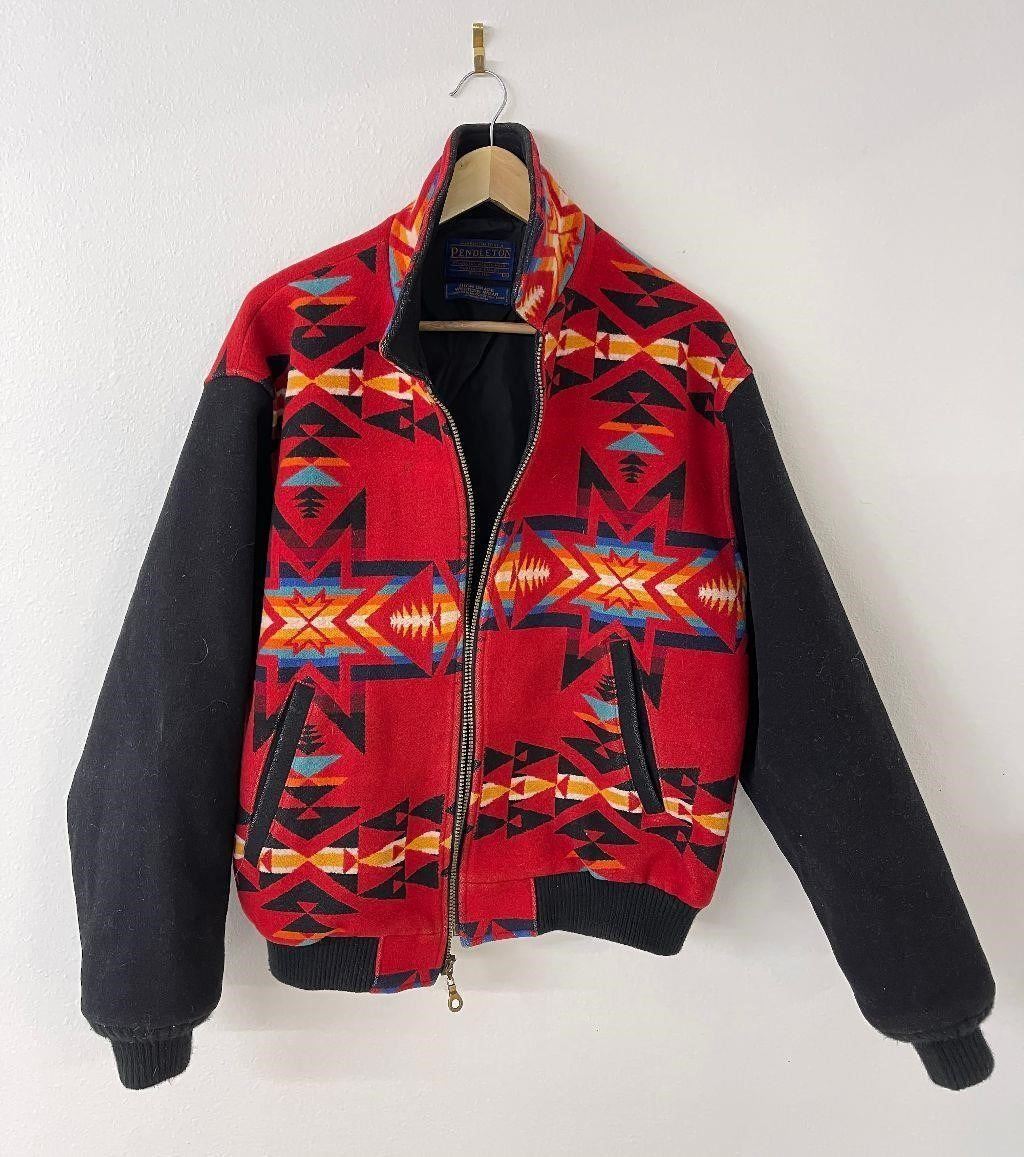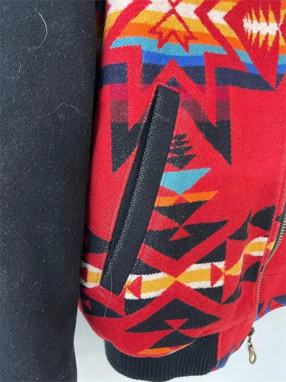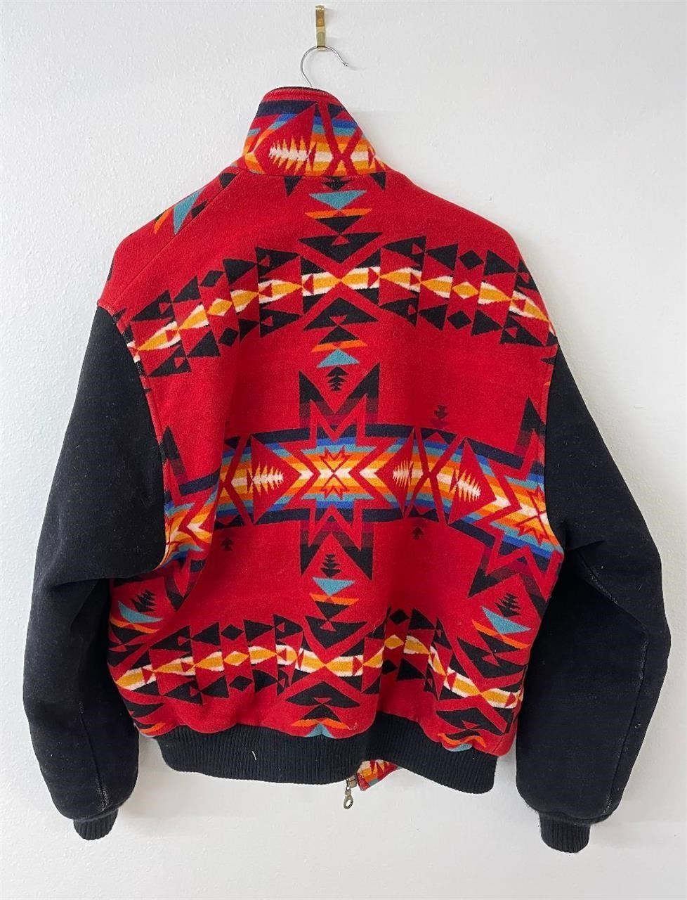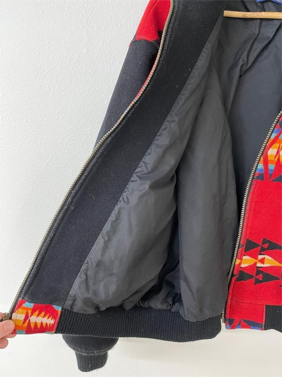 Nice wool coat. Sioux star pattern. Size XL. Some minor areas of wear as shown, no rips, tears, repairs.