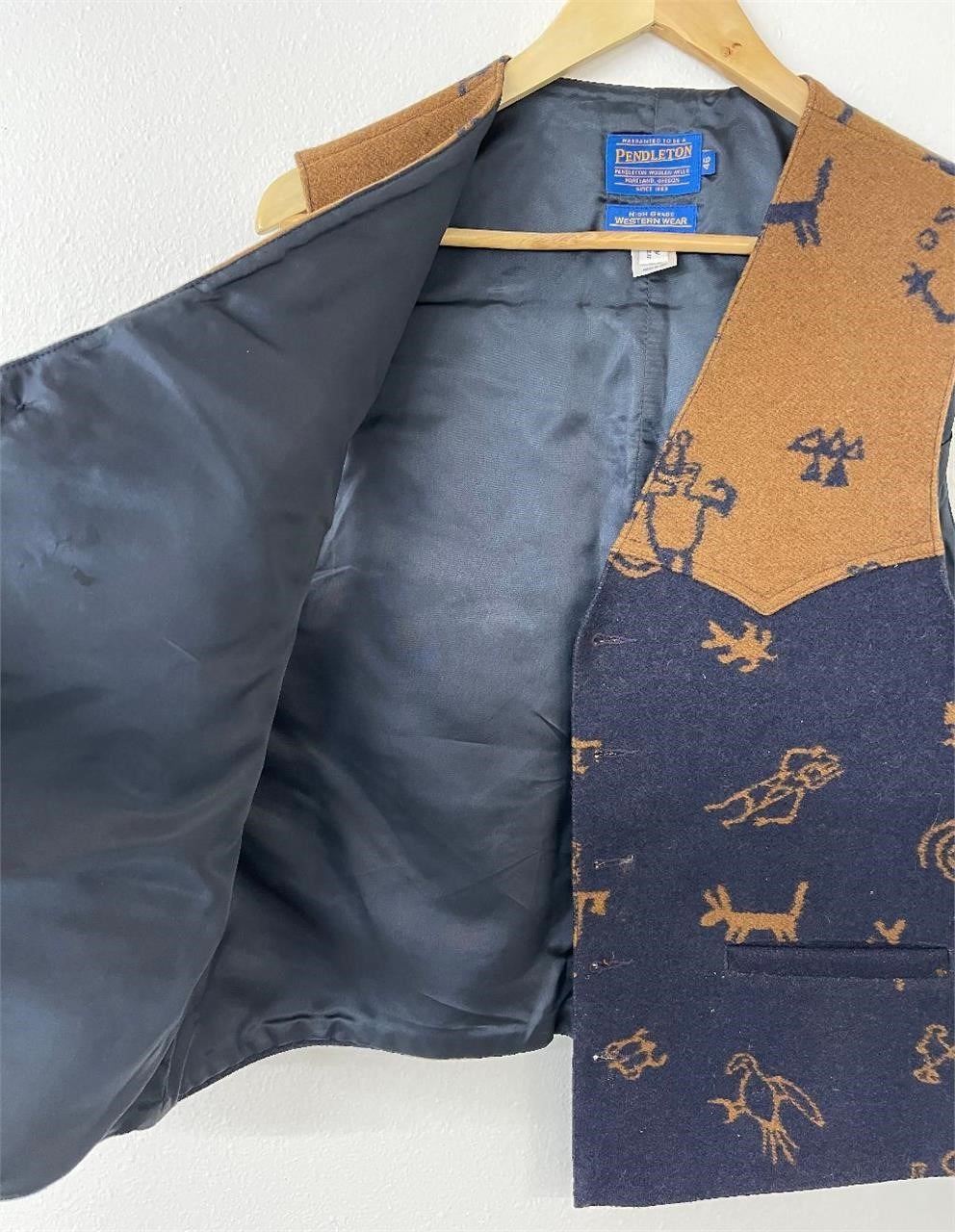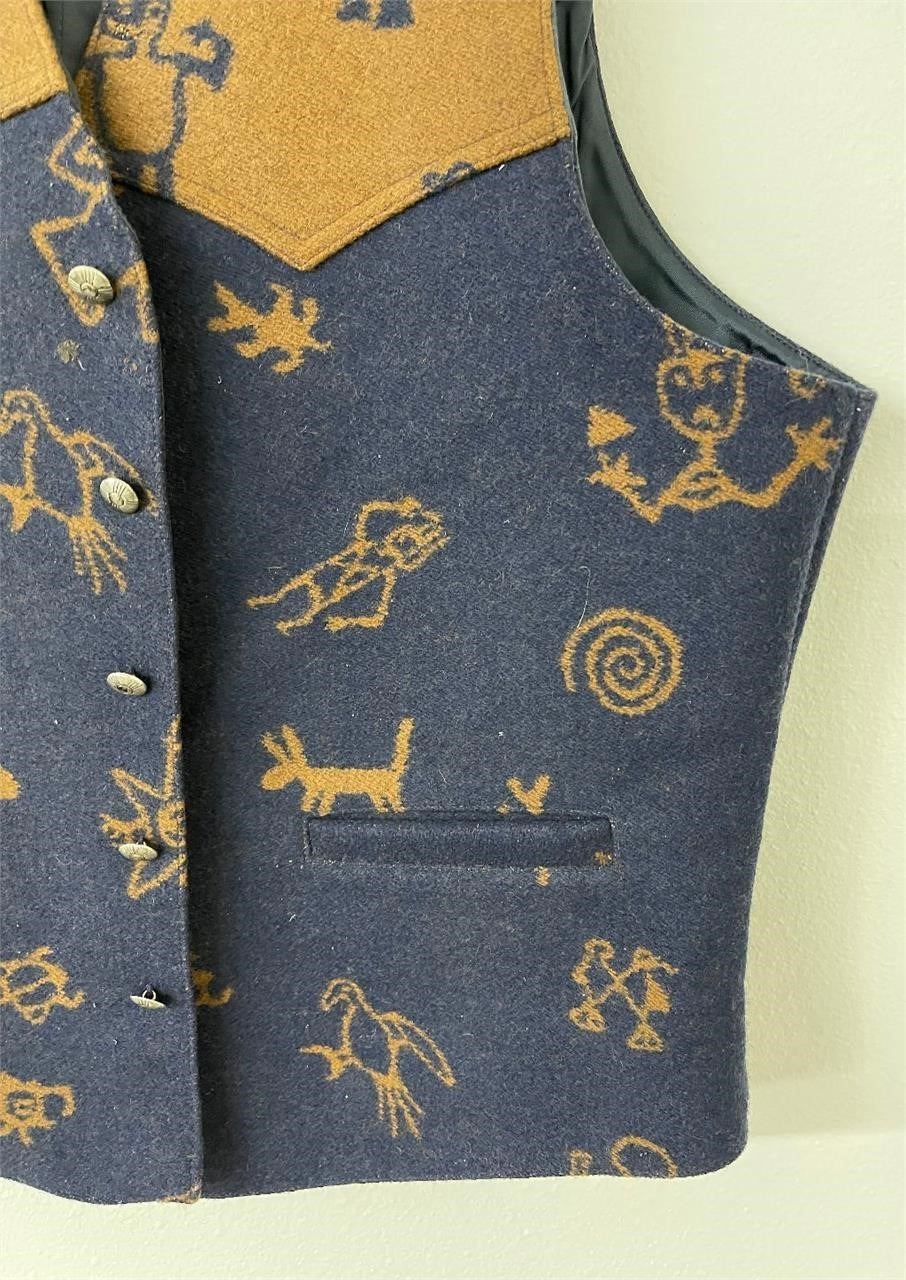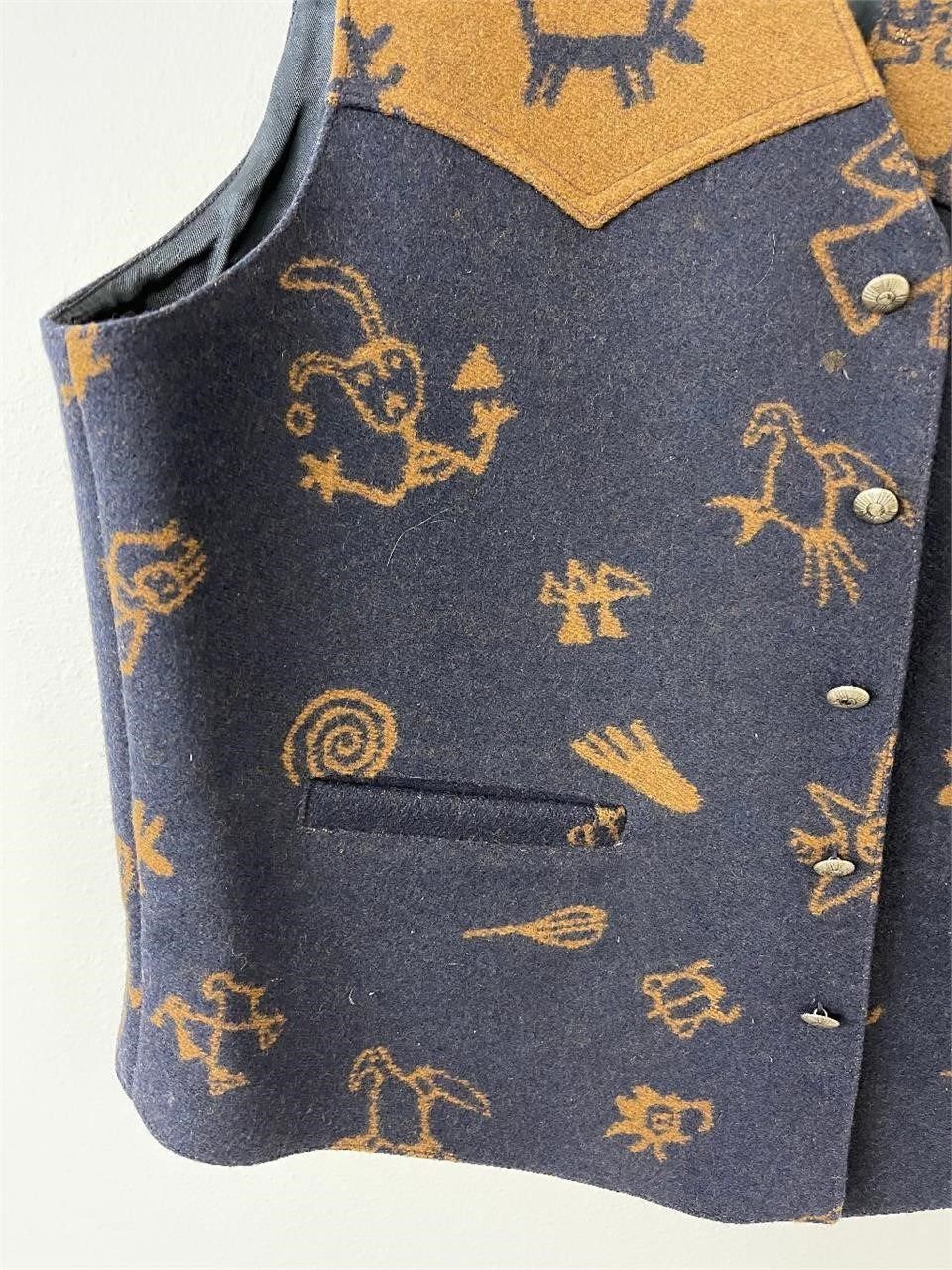 Very nice Pendleton vest. Southwestern Pictograph pattern. Size is 46. Made in USA.