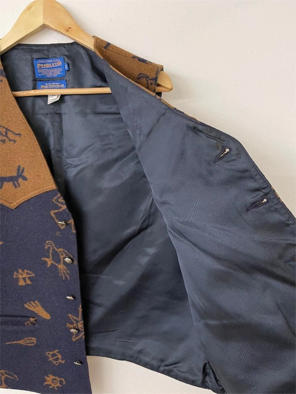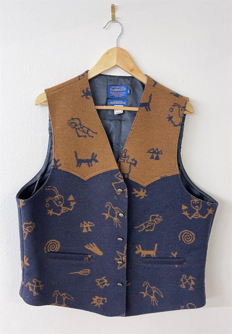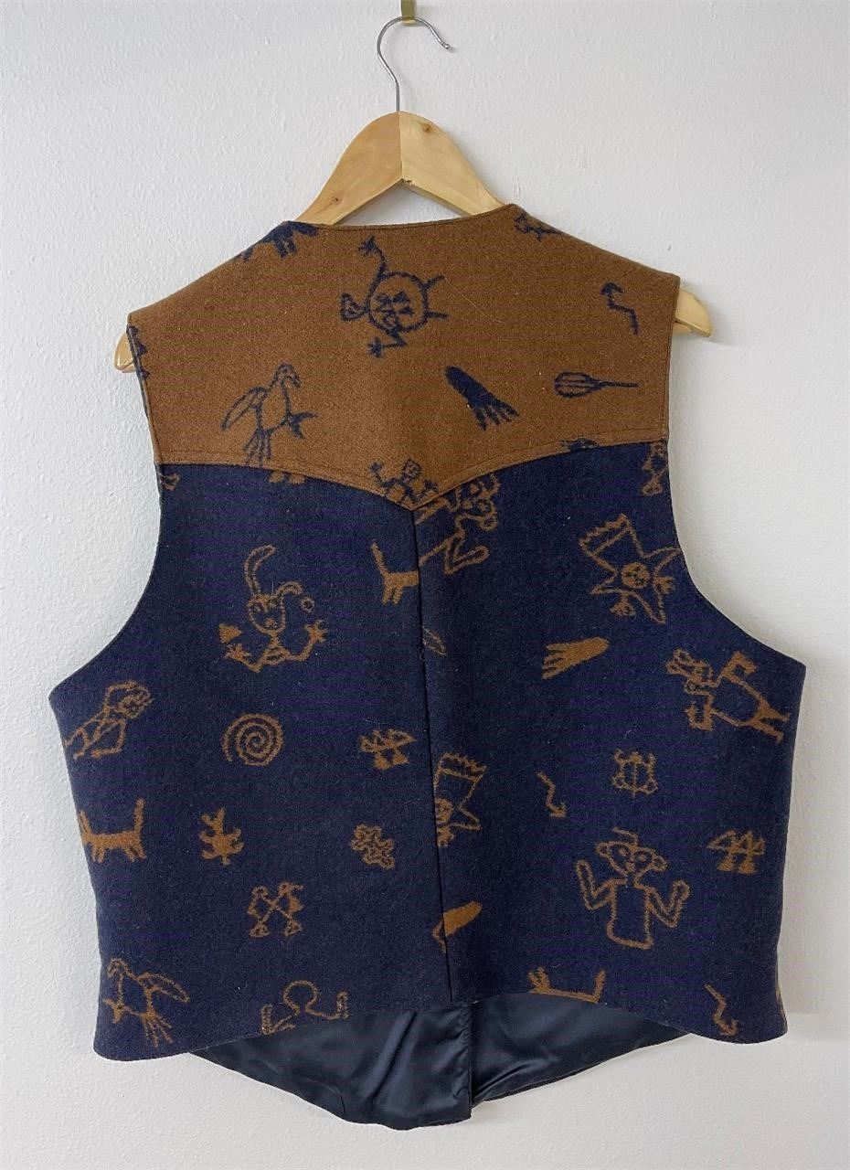 Very nice Pendleton vest. Southwestern Pictograph pattern. Size is 46. Made in USA.