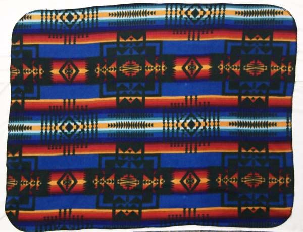 Pendleton Style Fleece Lap Robe, measures 45''W x 56''L, beautiful vibrant warm colors, needs to be cleaned