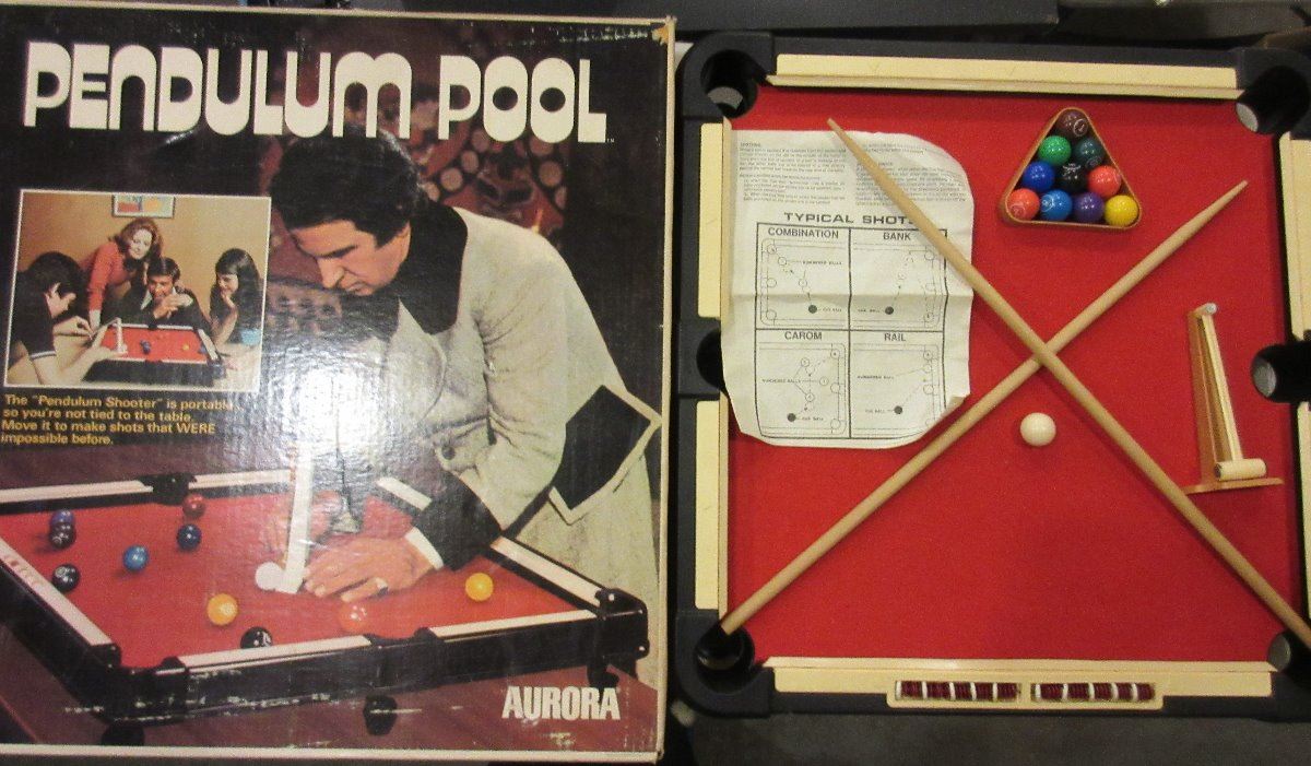 1973 Aurora Pendulum Pool game in box with instructions appears all pieces are there Great shape