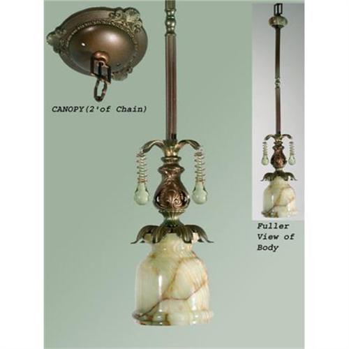 Height: 30" Plus Cahin Width: 6" Bulb: Flourescent 60 W Equivalent Supplied Hand painted, Genuine Onyx Shade and Accents, 60W (Equivalent) Flourescent Bulb Supplied<BR>Free Shipping in the continental US