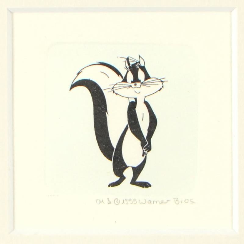 "Penelope Pussycat" is a limited edition etching on paper with hand-tinted coloring from Warner Bros, numbered and dated 1999. This piece comes framed. Measures approx. 9" x 9" (with frame), 2" x 2.5" (image).