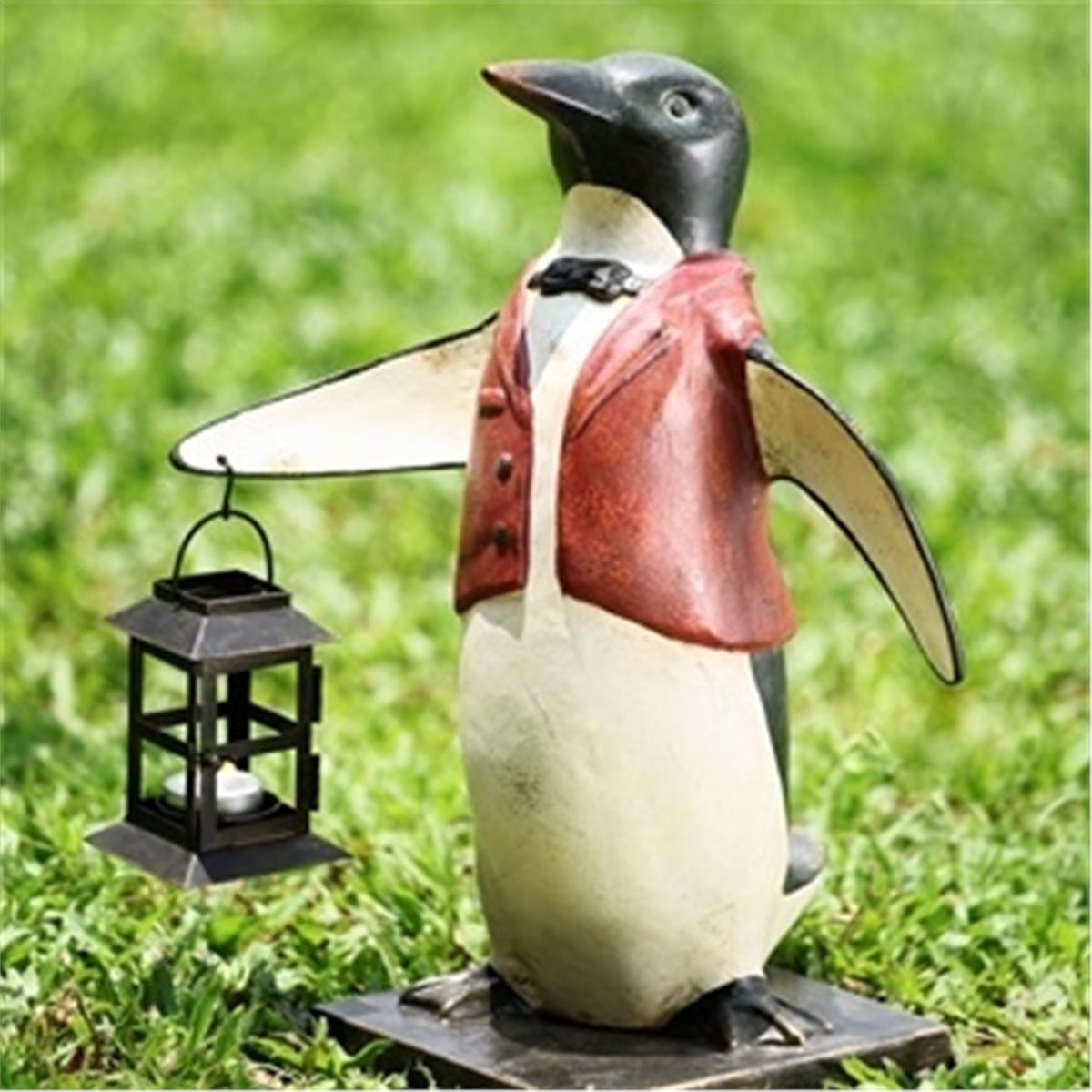 Penguine Waiter Lantern Candle Holder - 15"H 10"W 10.5"D - Cast Iron, Glass & Aluminum