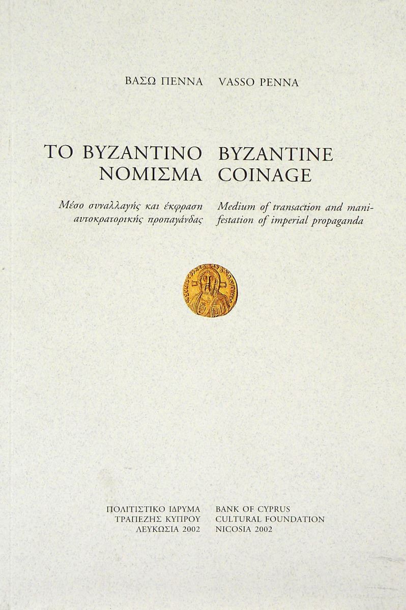 Penna, Vasso. BYZANTINE COINAGE: MEDIUM OF TRANSACTION AND MANIFESTATION OF IMPERIAL PROPAGANDA. Nicosia, 2002. 8vo, original pictorial card covers. 149, (3) pages; illustrated. Bilingual (English and Greek). Fine. Rarely offered.