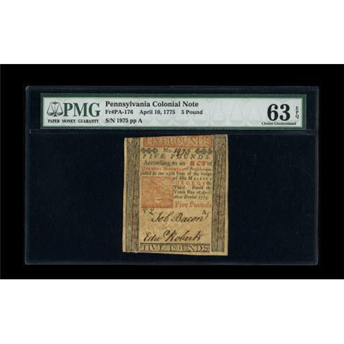 Pennsylvania April 10, 1775 £5 PMG Choice