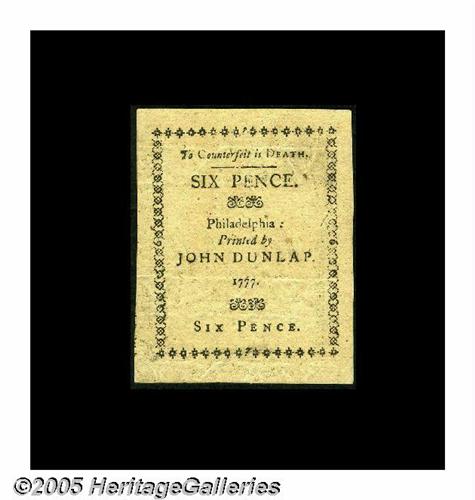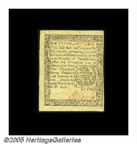 Pennsylvania April 10, 1777 6d Very Choice New. H