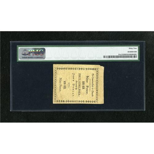 Pennsylvania April 10, 1777 9d PMG Uncirculated