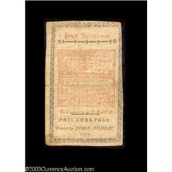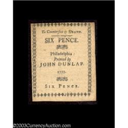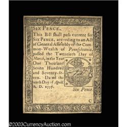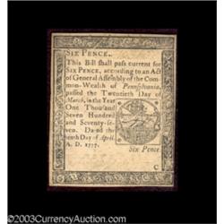<TABLE cellSpacing=0 cellPadding=0 width="100%" bgColor=#000000 border=0><TBODY> <TR><TD width="100%"><TABLE cellSpacing=1 cellPadding=3 width="100%" border=0><TBODY><TR><TD width="100%" bgColor=#79735c><FONT face=arial color=#ffffff size=3><B>Description</B> </FONT></TD></TR><TR><TD width="100%" bgColor=#ffffff><FONT face=arial size=2><B>Pennsylvania April 10, 1777 Set.</B></I> The three different formats from this same issue, a diminutive 6d note and two full-size notes: a 2s printed all in black and 4s printed in red and black. All three notes grade <B>Extremely Fine</B></I> or better. (225-up ) (3 notes) </FONT></TD></TR></TBODY></TABLE></TD></TR></TBODY></TABLE><BR><TABLE cellSpacing=0 cellPadding=0 width="100%" bgColor=#000000 border=0><TBODY><TR> 3 notes Important notice: Heritage usually auctions material at the rate of 200-250 lots per hour. On some occasions eBay Live bid software or the Internet may not be able to keep up with the pace of the auction. We recommend placing a realistic absentee bid now as insurance to avoid disappointment. Occasionally the auctioneer may eliminate or reject an eBay Live bid, and the auctioneer may also reopen a lot after the close of the eBay live bidding (usually because we missed an audience bid), and may reject your bid even if it shows you as the winning bidder. By bidding via eBay Live, you agree that Heritage may award the lot to another bidder at its sole discretion under the circumstances described above or any other reasonable circumstances. Also please note that all Heritage lots purchased through eBay Live carry a 20% Buyer's Premium. Please make sure you read the Terms and Conditions before you bid.</TR></TBODY></TABLE>