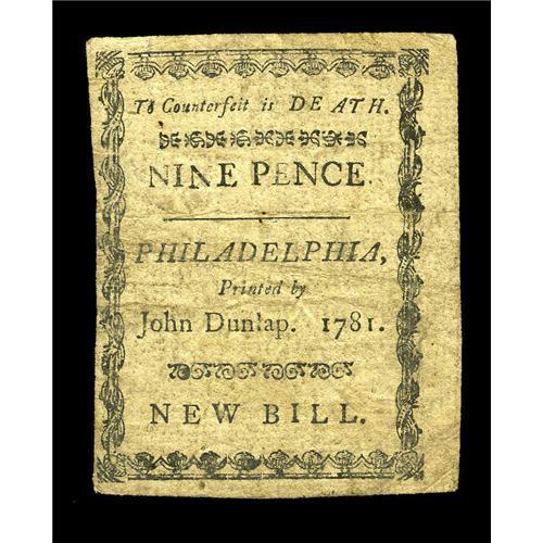 Pennsylvania April 20, 1781 9d Fine-Very Fine. A well Pennsylvania April 20, 1781 9d Fine-Very Fine.