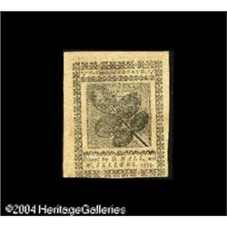 Pennsylvania 'April 3, 1772' 18d Very Choice New. A per <B>Pennsylvania April 3, 1772 18d Very Choice New.</B></I> A perfect Gem example of this slightly scarcer Pennsylvania issue save for some very light staining in the signature block. <BR><BR><B>Important notice:</B> Heritage usually auctions material at the rate of 200-250 lots per hour. On some occasions eBay Live bid software or the Internet may not be able to keep up with the pace of the auction. We recommend placing a realistic absentee bid now as insurance to avoid disappointment. Occasionally the auctioneer may eliminate or reject an eBay Live bid, and the auctioneer may also reopen a lot after the close of the eBay live bidding (usually because we missed an audience bid), and may reject your bid even if it shows you as the winning bidder. By bidding via eBay Live, you agree that Heritage may award the lot to another bidder at its sole discretion under the circumstances described above or any other reasonable circumstances. Since eBay bids are not shown to us until we open the lot on the floor, we treat those bids just like floor bids. In most cases the floor responds before the eBay bid is presented to us, due to Internet lag time, so for consistency we have made it a policy that floor bids are always considered first over tie eBay live bids. Also please note that all Heritage lots purchased through eBay Live carry a 20% Buyer's Premium. Please make sure you read the Terms and Conditions before you bid. This lot is being auctioned in conjunction with a live floor auction by Heritage Galleries & Auctioneers. All final auction and invoice information will be supplied by Heritage Galleries & Auctioneers, and all other information should be considered preliminary. Lot:15261