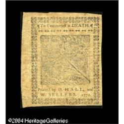 Pennsylvania April 3, 1772 2s Extremely Fine. A ver <B>Pennsylvania April 3, 1772 2s Extremely Fine.</B></I> A very nice example. <BR><BR><B>Important notice:</B> Heritage usually auctions material at the rate of 200-250 lots per hour. On some occasions eBay Live bid software or the Internet may not be able to keep up with the pace of the auction. We recommend placing a realistic absentee bid now as insurance to avoid disappointment. Occasionally the auctioneer may eliminate or reject an eBay Live bid, and the auctioneer may also reopen a lot after the close of the eBay live bidding (usually because we missed an audience bid), and may reject your bid even if it shows you as the winning bidder. By bidding via eBay Live, you agree that Heritage may award the lot to another bidder at its sole discretion under the circumstances described above or any other reasonable circumstances. Since eBay bids are not shown to us until we open the lot on the floor, we treat those bids just like floor bids. In most cases the floor responds before the eBay bid is presented to us, due to Internet lag time, so for consistency we have made it a policy that floor bids are always considered first over tie eBay live bids. Also please note that all Heritage lots purchased through eBay Live carry a 20% Buyer's Premium. Please make sure you read the Terms and Conditions before you bid. This lot is being auctioned in conjunction with a live floor auction by Heritage Galleries & Auctioneers. All final auction and invoice information will be supplied by Heritage Galleries & Auctioneers, and all other information should be considered preliminary. Lot:15262