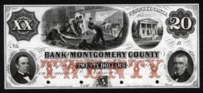 Norristown, PA. 18xx (ca.1840-50's). $20, (PA-365-G48a), SENC, Proof banknote, black on light red underprint. Printed on india paper that is unmounted. Iron workers in middle with building to right, portrait of Slingluff on LL and Boyer on LR. POC's in signature blocks. CU condition. BBC - BCC. Scarce and very attractive tinted note in superb condition.