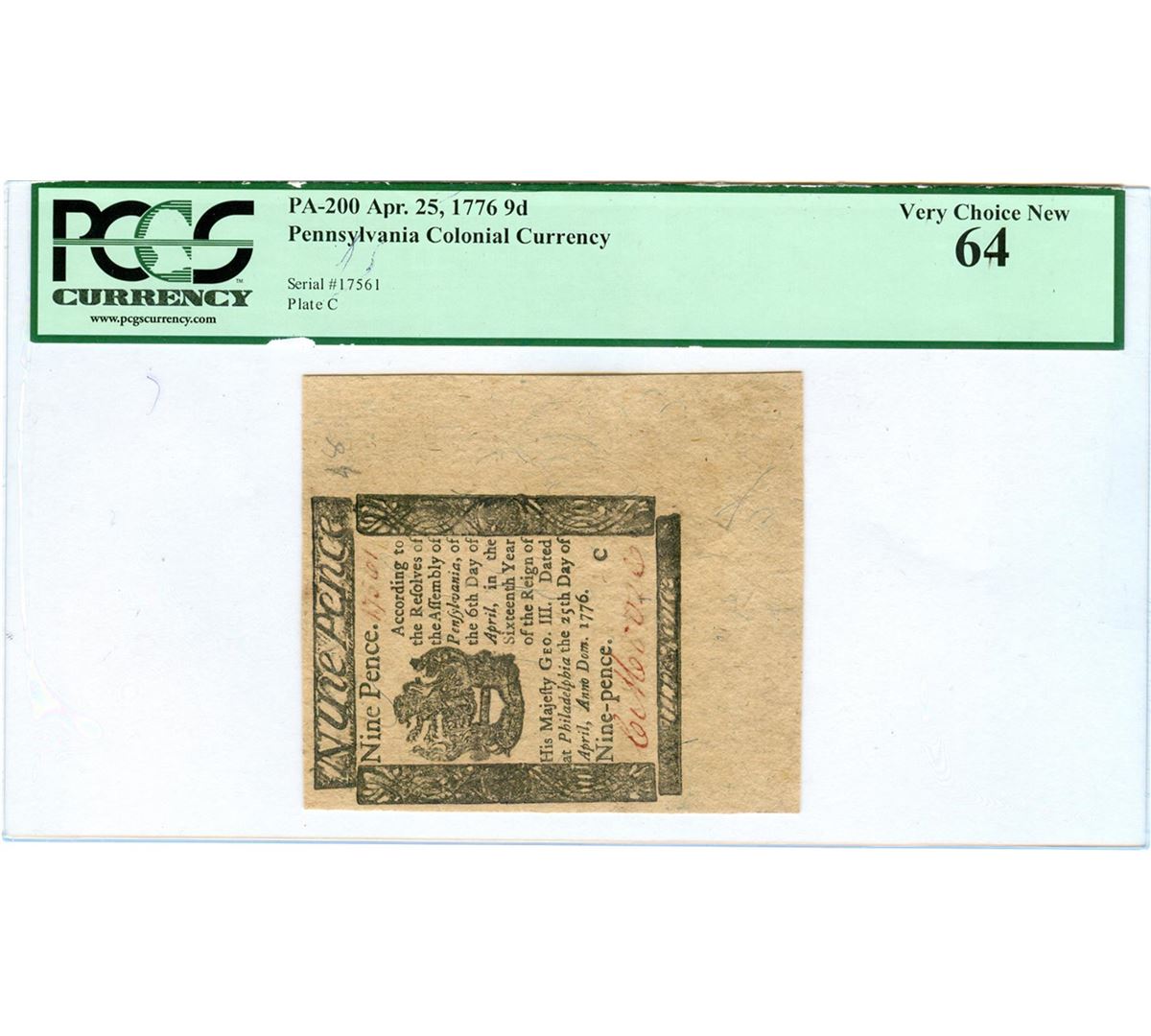 Pennsylvania Colonial Currency, Nine Pence. PA-200 Apr.25, 1776 9d.