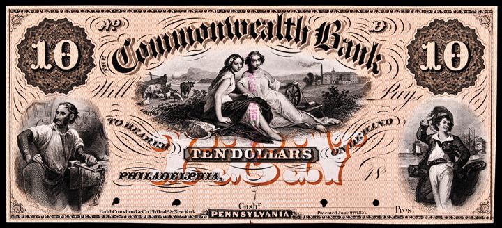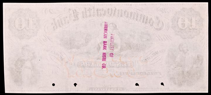 Pennsylvania. Commonwealth Bank. Ten Dollars. Choice India Paper Color Proof
