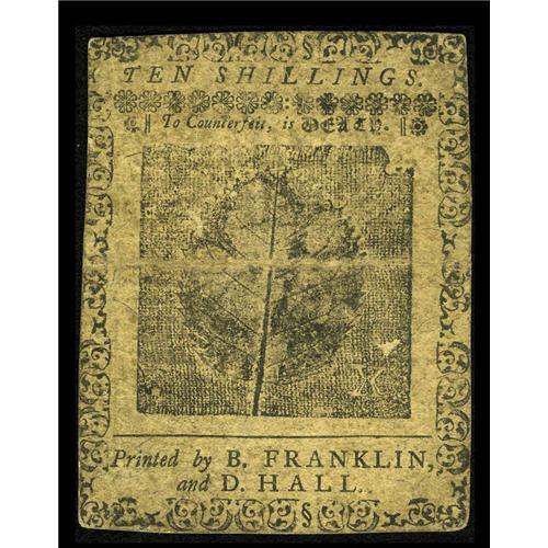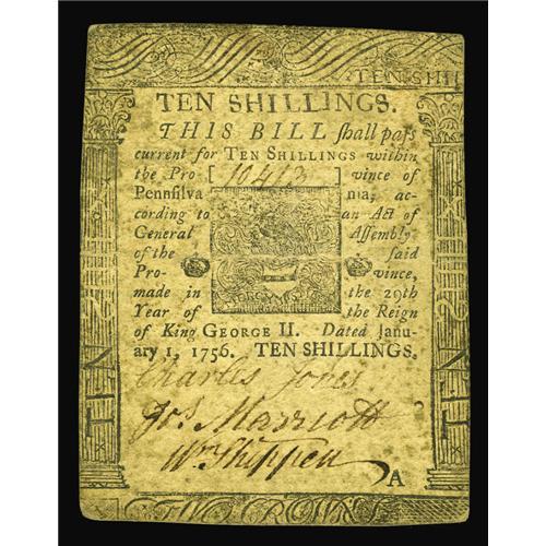 Pennsylvania January 1, 1756 10s Very Fine+. This marks Pennsylvania January 1, 1756 10s Very Fine+.
