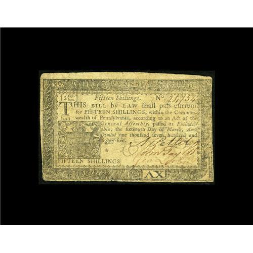 Pennsylvania March 16, 1785 15s Extremely Fine.