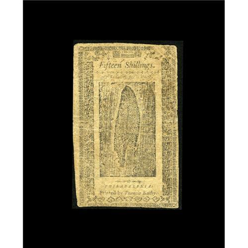 <B>Pennsylvania March 16, 1785 15s Extremely Fine.</B></I> This is one of the nicest examples of this scarce, late-date issue that we have had the pleasure of handling. All three signatures are strong, and three of the margins are broad, but the right margin just touches the design on both sides. Scarce and underrated in this grade.