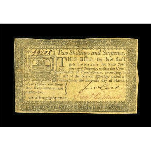 Pennsylvania March 16, 1785 2s/6d Fine-Very Fine. This