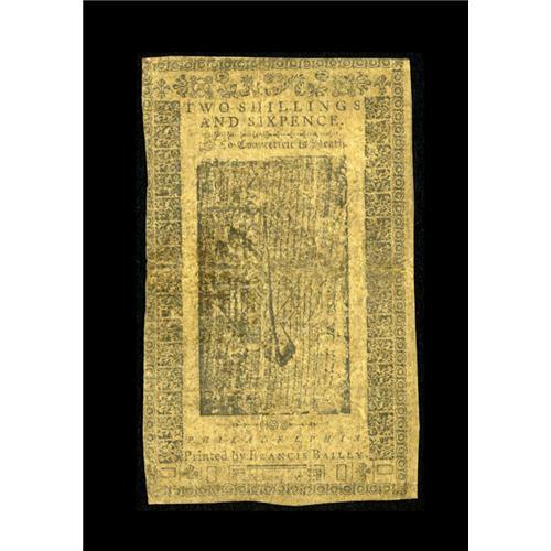<B>Pennsylvania March 16, 1785 2s/6d Fine-Very Fine.</B></I> This is the only note of this denomination and issue that we have offered at HCAA.<BR><BR><b>Shipping:</b> Coin/Currency (<a target="_blank" href="http://www.heritageauctions.com/common/shipping.php">view shipping information</a>)