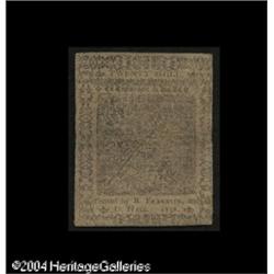Pennsylvania May 20, 1758 20s Choice Very Fine. Utt <B>Pennsylvania May 20, 1758 20s Choice Very Fine.</B></I> Utterly without restorations, boldly signed and problem free. This is a very scarce Pennsylvania issue from which we've handled only fourteen notes of all denominations combined. The best of the twelve were three graded Very Fine, only one of which was a 20s. In May of 2002, we sold a 15s, also graded Very Fine, that realized $1035. This piece is considerably stronger, and should do a bit better. <BR><BR><B>Important notice:</B> Heritage usually auctions material at the rate of 200-250 lots per hour. On some occasions eBay Live bid software or the Internet may not be able to keep up with the pace of the auction. We recommend placing a realistic absentee bid now as insurance to avoid disappointment. Occasionally the auctioneer may eliminate or reject an eBay Live bid, and the auctioneer may also reopen a lot after the close of the eBay live bidding (usually because we missed an audience bid), and may reject your bid even if it shows you as the winning bidder. By bidding via eBay Live, you agree that Heritage may award the lot to another bidder at its sole discretion under the circumstances described above or any other reasonable circumstances. Since eBay bids are not shown to us until we open the lot on the floor, we treat those bids just like floor bids. In most cases the floor responds before the eBay bid is presented to us, due to Internet lag time, so for consistency we have made it a policy that floor bids are always considered first over tie eBay live bids. Also please note that all Heritage lots purchased through eBay Live carry a 20% Buyer's Premium. Please make sure you read the Terms and Conditions before you bid. This lot is being auctioned in conjunction with a live floor auction by Heritage Galleries & Auctioneers. All final auction and invoice information will be supplied by Heritage Galleries & Auctioneers, and all other information should be considered preliminary. Lot:15247