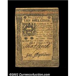 Pennsylvania October 1, 1773 10s About New. A very lightly circulated example of this popular issue.