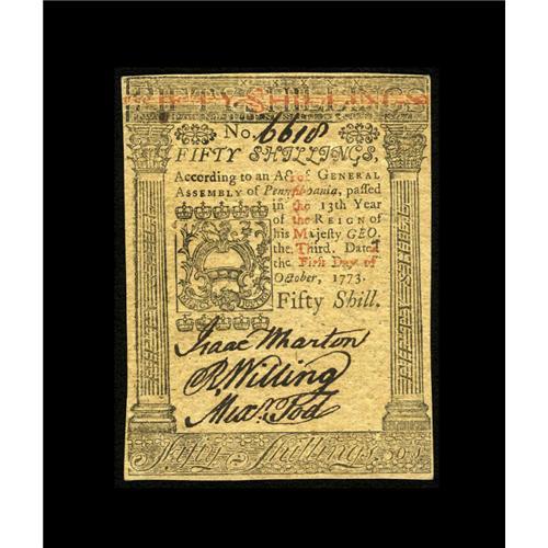 Pennsylvania October 1, 1773 50s Choice New. Dark signa