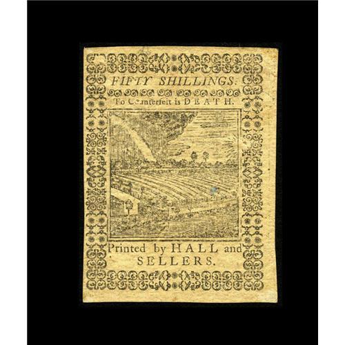 <B>Pennsylvania October 1, 1773 50s Choice New.</B></I> Dark signatures on this nicely preserved example.