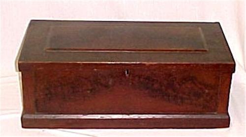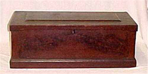 Pennsylvania grain painted pine storage box; rectangular hinged top with raised panel; mid 19th C.; measures 18" high x 22" across x 11" deep (no visible defects)