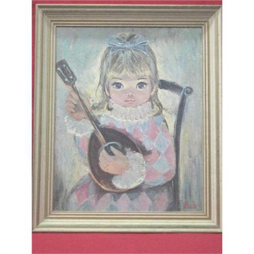 </font></strong>This is a very beautiful Print of painting by Sherle, it is a girl with big eyes and playing instrument. H:24" with frame/ 20" without - W: 20" with frame/16' without.</font>