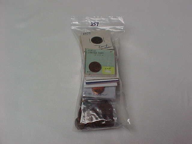 Penny Mix: Flying Eagle 1857 AG corrosion; 124 Wheat in bag, 24 Wheat in 2x2 includes 57 PF, 58D rim error, some up to BU; 5 Memorial (2-61 PF, 62 & 63 PF, 65)