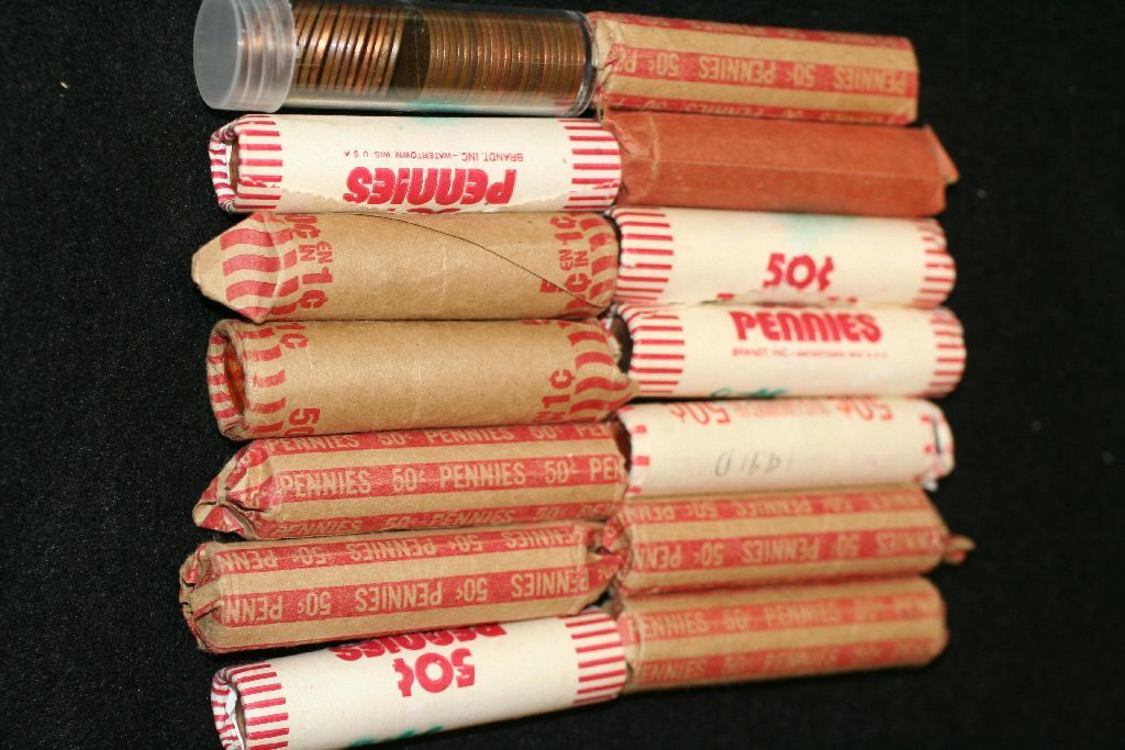 Penny Rolls, 13 complete, 1 incomplete, various dates & conditions