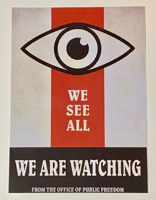 Original "We Are Watching" flyer used in the drama television series " Pennyworth" (2019), based on characters published by DC Comics and created by Bob Kane and Bill Finger, that premiered on July 28, 2019. Starring Jack Bannon as the titular character, alongside Ben Aldridge, Ryan Fletcher, Hainsley Lloyd Bennett, Paloma Faith, and Jason Flemyng. The story of Alfred Pennyworth, a former special-forces officer living in London and working for Bruce Wayne's father.