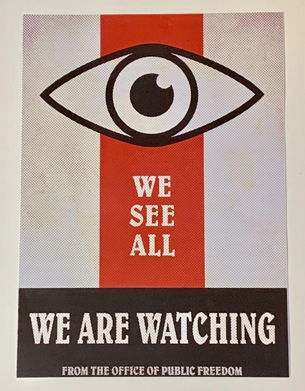 Original "We Are Watching" flyer used in the drama television series "Pennyworth" (2019), based on characters published by DC Comics and created by Bob Kane and Bill Finger, that premiered on July 28, 2019. Starring Jack Bannon as the titular character, alongside Ben Aldridge, Ryan Fletcher, Hainsley Lloyd Bennett, Paloma Faith, and Jason Flemyng. The story of Alfred Pennyworth, a former special-forces officer living in London and working for Bruce Wayne's father.
