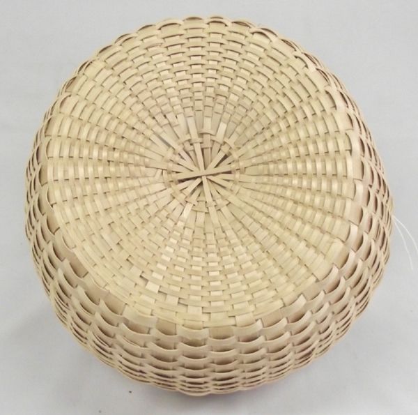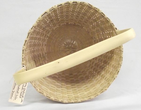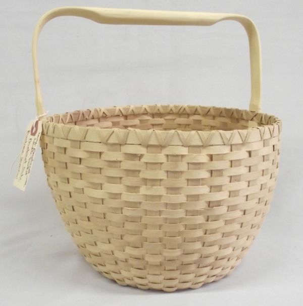 Native American Penobscot Basket by Barbara Francis, Penobscot, Maine, large, very nice wooden handle, finely woven, measures approx. 11''H (includes handle) x 10''D.