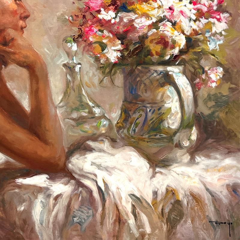 "Pensativa" is a limited edition publisher's proof on clay-board by Royo, numbered 1/5 and hand signed by the artist. Includes Letter of Authenticity. Measures approx. 24" x 29" (image).