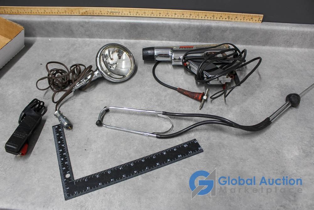 Penske Timing Light, Stethoscope & Vintage Spot Light