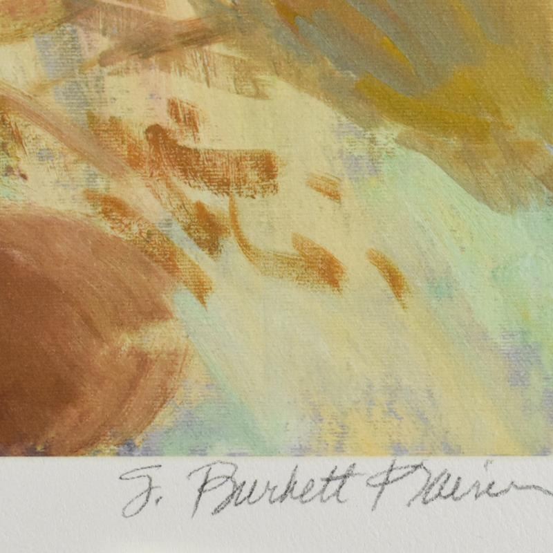 "Peonies & Bachelor Buttons" is a limited edition giclee on paper by S. Burkett Kaiser, HC numbered 3/3 and hand signed by the artist. Includes Letter of Authenticity. Measures approx. 29" x 29" (border), 24" x 24" (image).